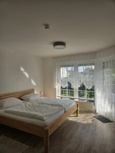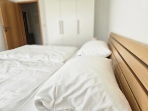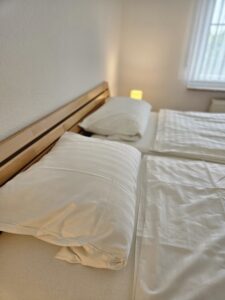 Die Wohnungen sind 50-60qm groß – die Doppelbetten sind 2x2m groß.