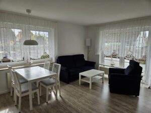 Die Wohnungen 1-3 befinden sich im Erdgeschoss, wobei die Wohnungen 1 und 3 über ein zweites separates Schlafzimmer verfügen. Die Wohnungen 4-6 befinden sich im Obergeschoss.