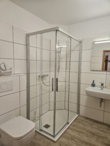 Ihr Auto parkt kostenfrei auf dem Grundstück – Fahrräder im abschließbaren Schuppen.